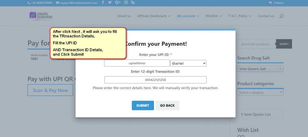 AFTER PAYMENT COPY THE TRANSACTION ID AND PAST IT IN NEXT STEP.