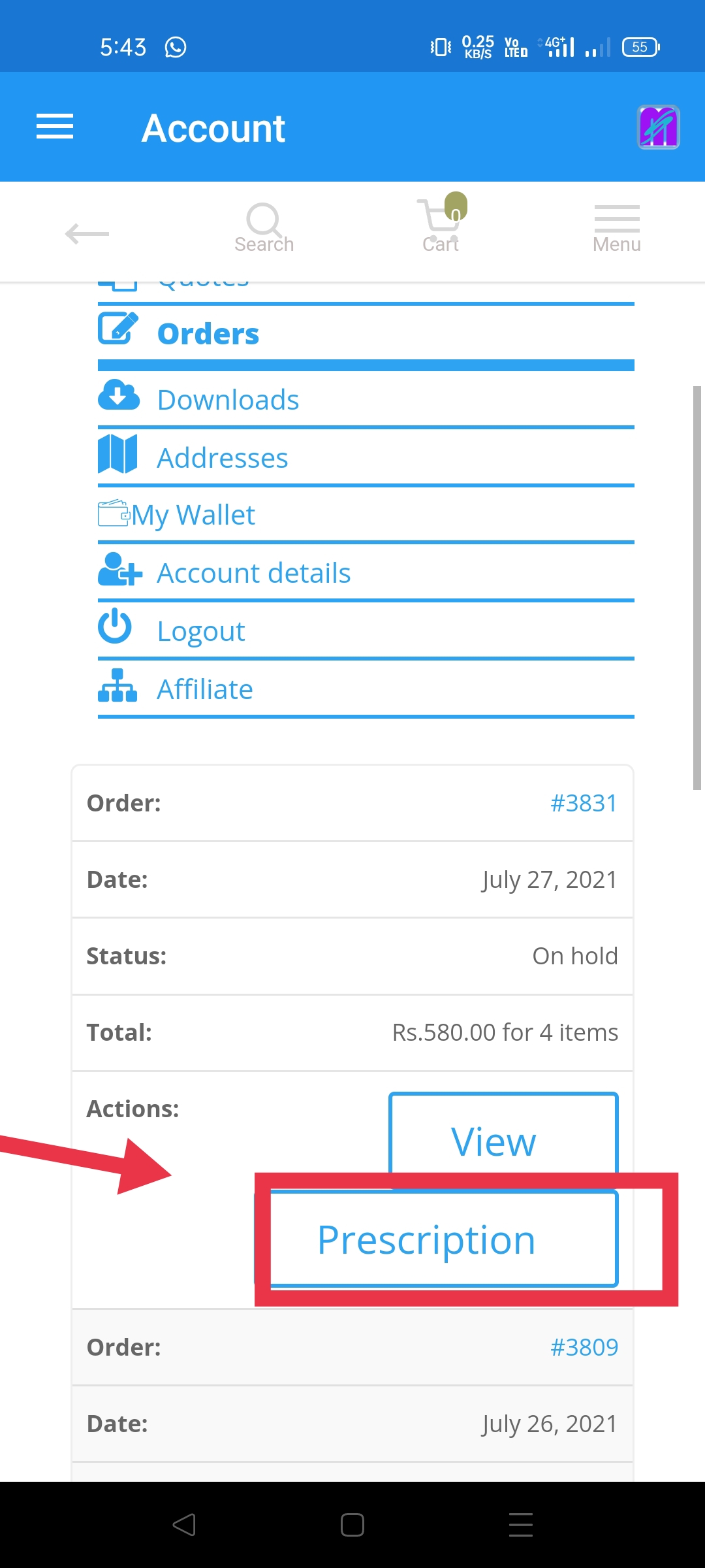 SELECT AND HOLD THE TOUCH FOR 2-3 SECOND TO PROPERLY SELECT THE IMAGE, AND THEN JUST CLICK THE SELECT BUTTON, THAT’S ALL, NEXT YOU WILL BE PROMPT TO PAY FOR THE ORDER VALUE, COMPLETE THE TRANSACTION AND YOU ARE DONE. JUST GO TO My-Account – Order Tab for Upload The PRESCRIPTION.